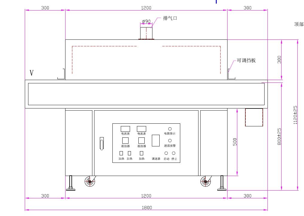 十一、温区:1段(2温区控制) | 十二、输送速度:0~3m/min |