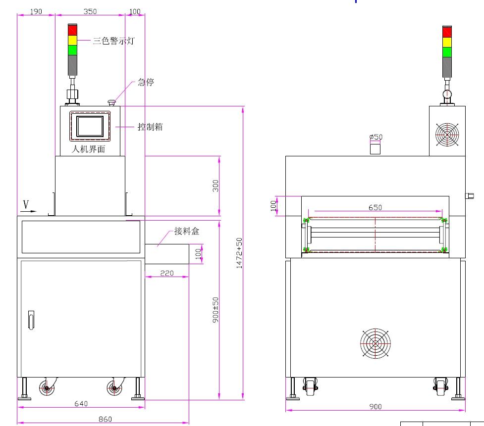 4. 输送速度:0~1min | 5. 入口高度:100mm |