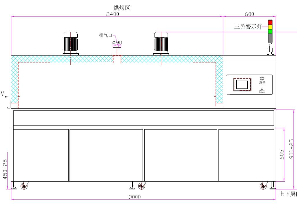 3、采用热风循环风式加热 | 4、人机界面触摸屏控制(7寸威纶屏+汇川PLC) |