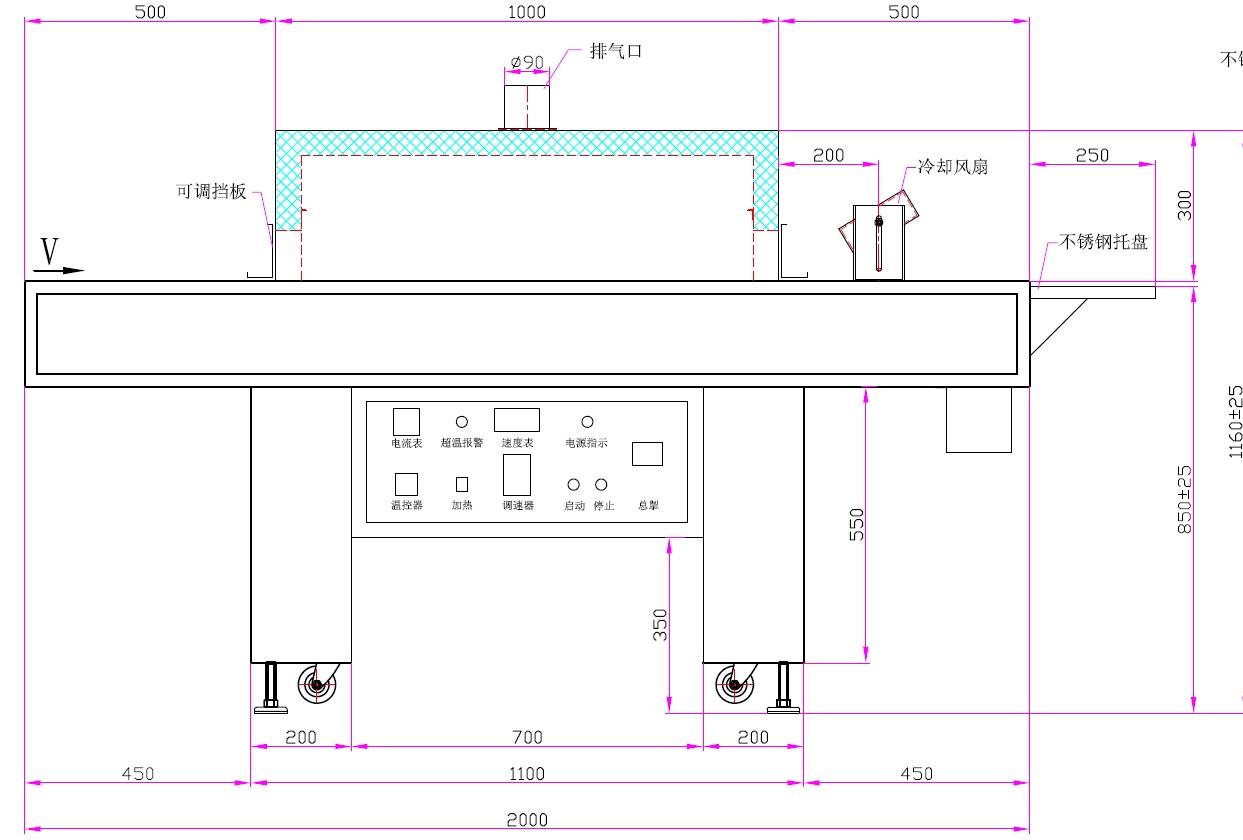 3. 采用无级调速 | 4. 输送材料:不锈钢网带 |