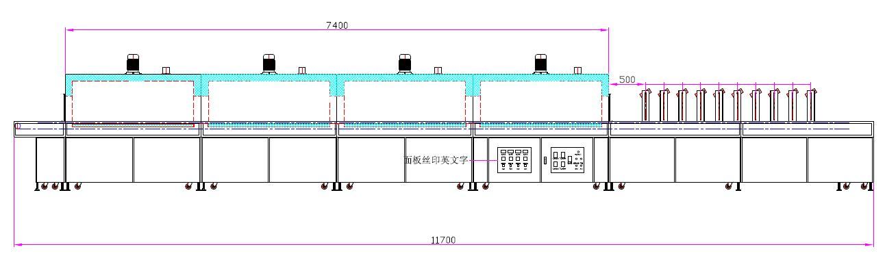 1、采用不锈钢发热管(单根功率1000W、220V) 2、发热管安装在工件上方