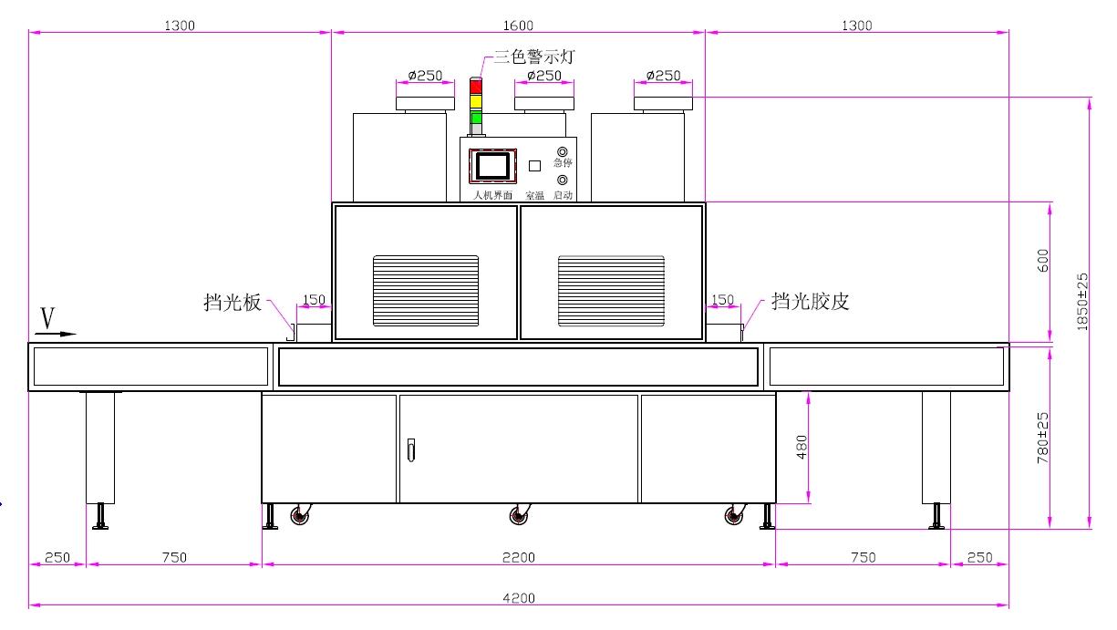 1.UV灯功率:12kw3支(UV卤素灯) | 2.UV灯总长:1650mm、弧长:1550mm |