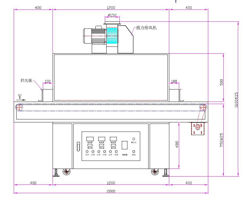 1. UV灯功率:2.0kW*3支(UV汞灯灯) | 2. UV灯总长:400mm、弧长:300mm |