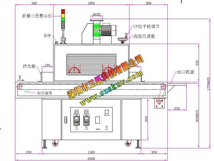 1、UV灯功率:2.0kw*2支 | 2、UV灯总长:350mm、弧长250mm |