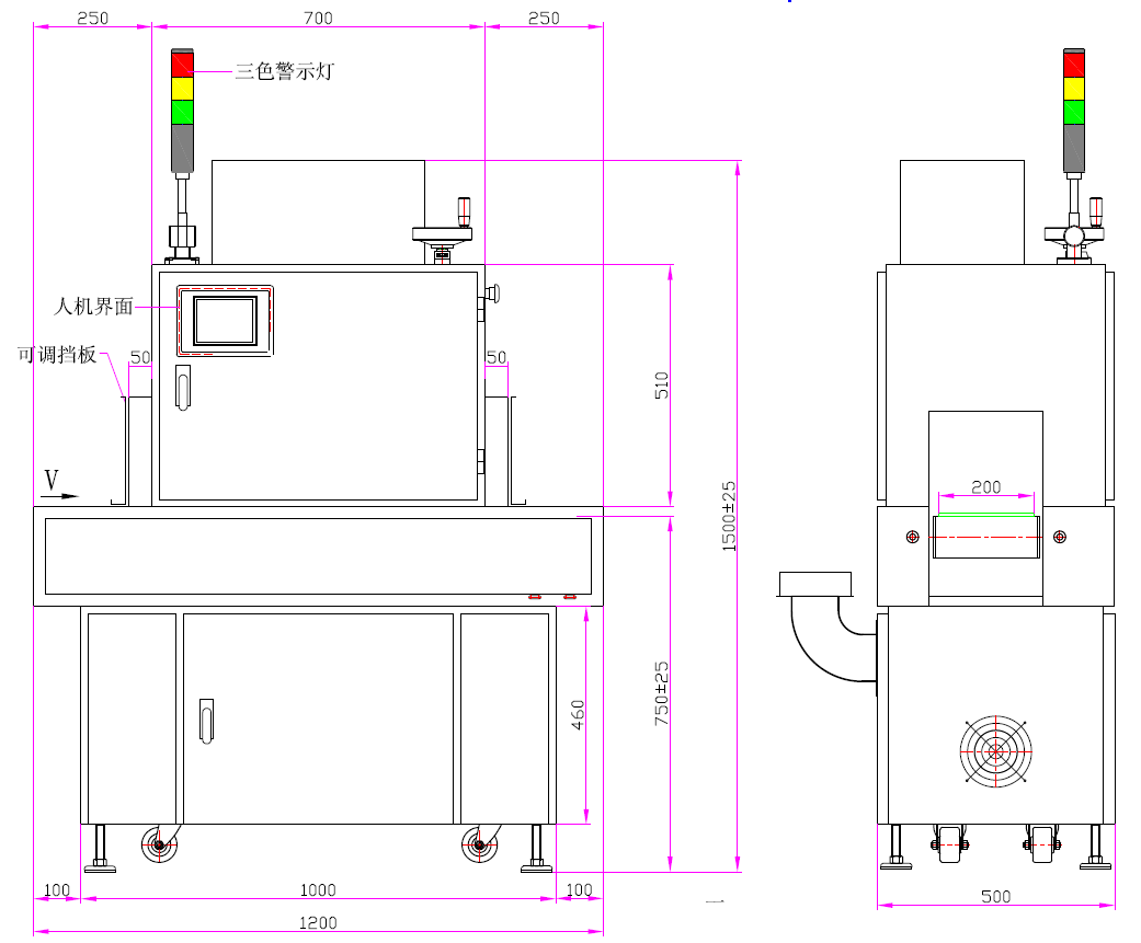 9、输送宽度:200mm | 10、输送速度:0~7m/min |