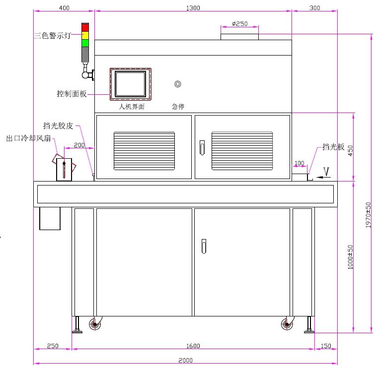 3、LED灯组照射长:800mm | 4、人机界面触摸屏控制 |