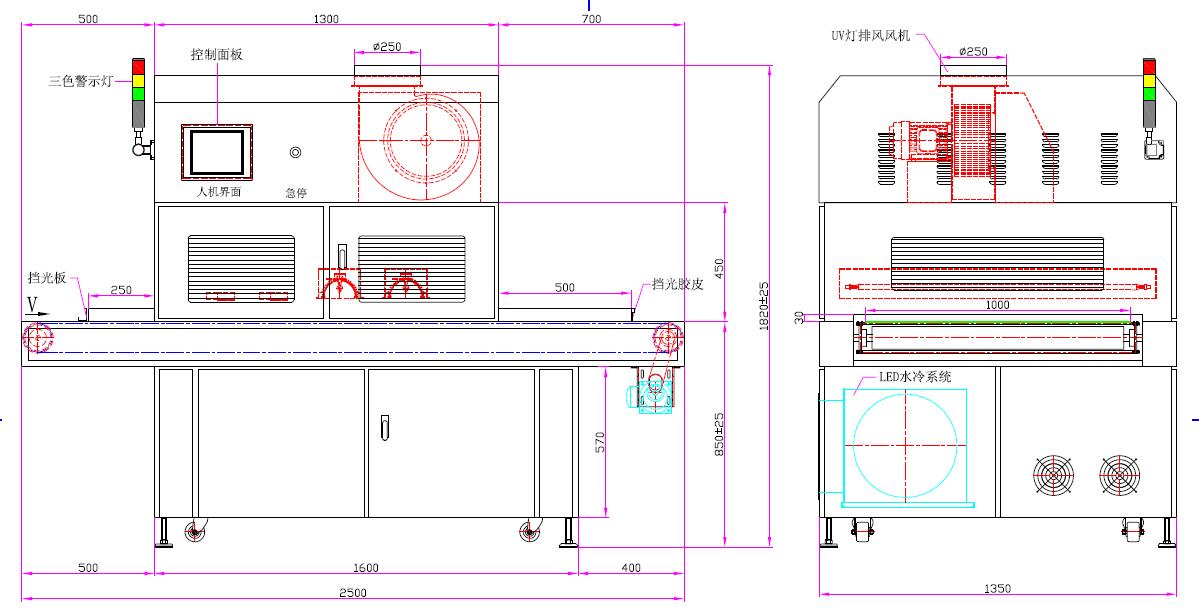 3、UV汞灯主波峰:365nm 4、LED灯组照射长:1000mm