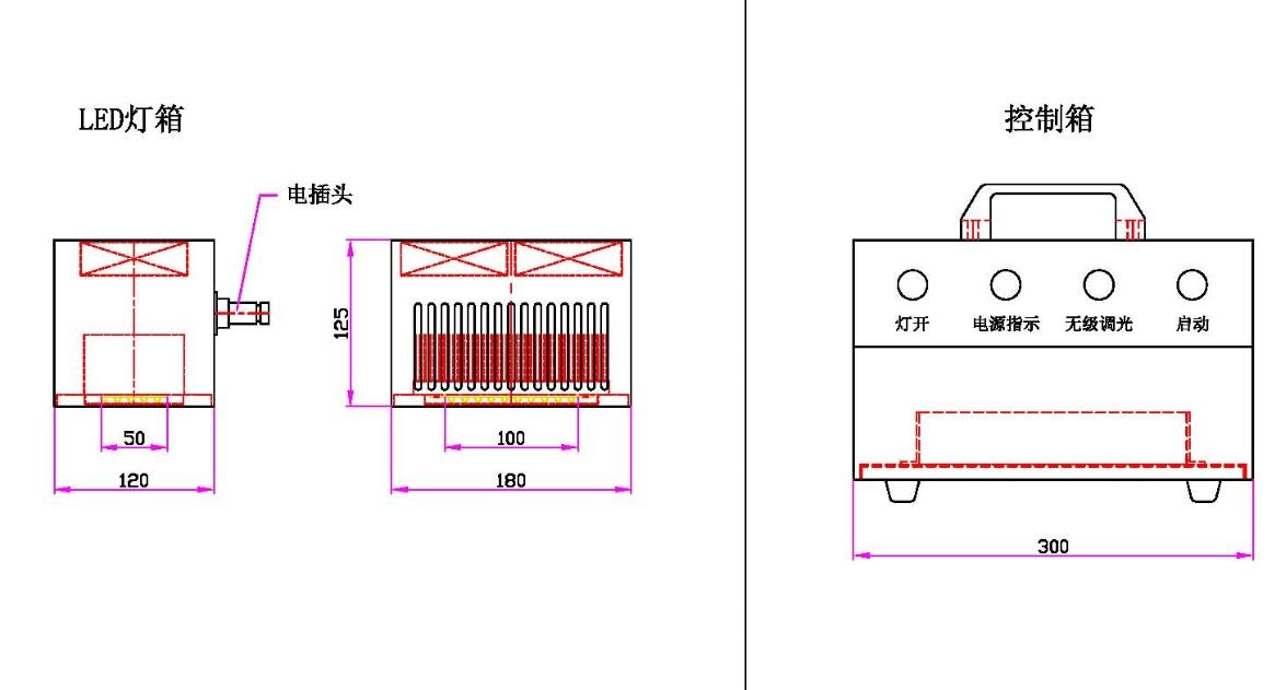 5、照射面:100 * 50mm 6、电源:220VAC 50HZ