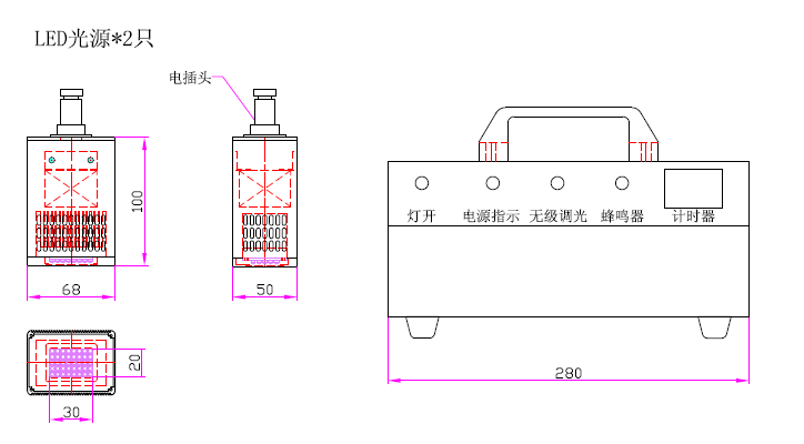 3、采用接触式按钮控制 4、LED灯组采用特制散热器
