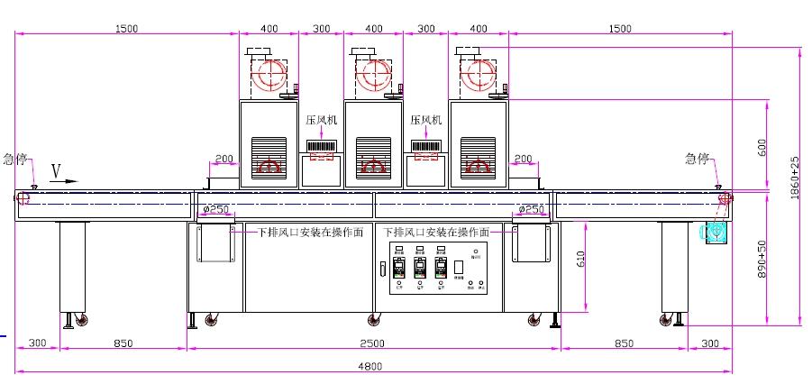 9、采用上、下排风系统 | 10、输送材料:特氟龙网带(导条) |