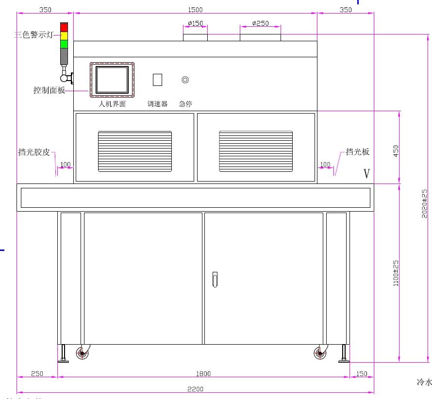 一、UV光源:LED*2组、汞灯/镓灯10kw*3组 | 二、UV汞灯总长:950mm、弧长850mm |