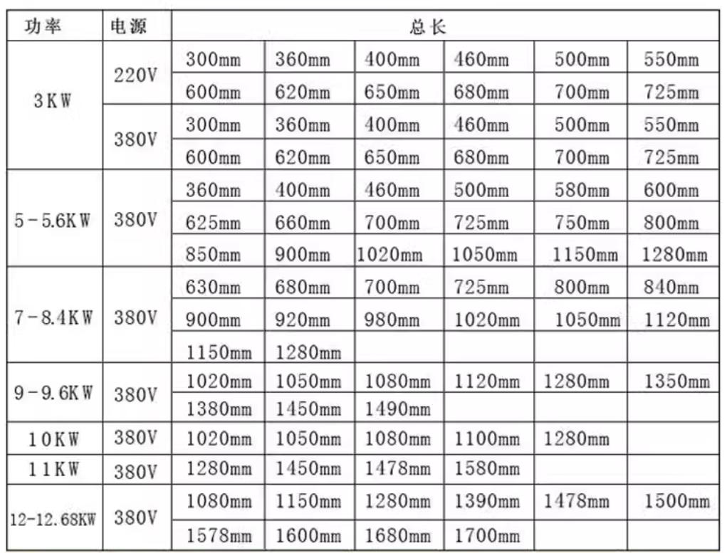 UV固化灯常用尺寸以及功率:
