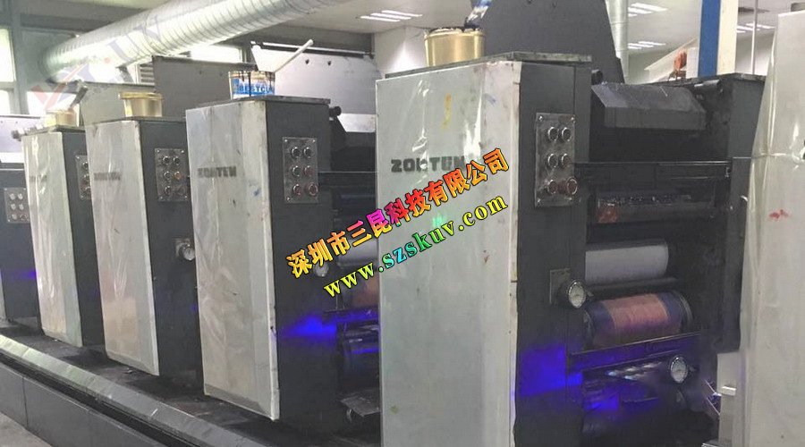 ▲在这种情况下,在佛山客户的中天胶印机上安装了LED UV固化系统。 客户使用杭华161普通UV墨水以60m / min的速度在涂布纸,贴纸等上进行八色打印。 无需汞灯或更换汞灯