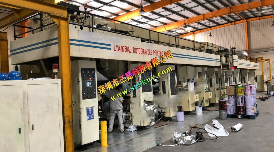 本例中的凹版水冷低温UV系统安装在济南万昌印刷包装有限公司的江阴利达凹版印刷机LYA-9750AL上。